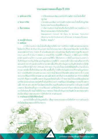 ในจังหวัดบุรีรัมย์ ด าเนินการในแปลงปาล์มน้ ามันของเกษตรกรที่อยู่ระยะให้ผลผลิต โดยคัดเลือก
