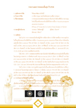 3. ชื่อการทดลอง การทดสอบประสิทธิภาพของสารป้องกันกำจัดโรคพืชในการควบคุม