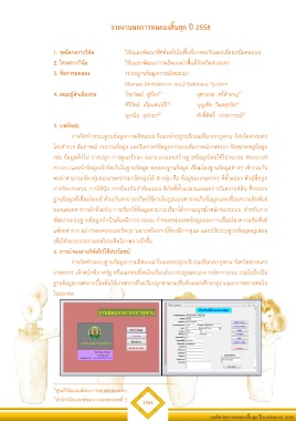 ของแต่ละตารางเข้าด้วยกัน การเรียกใช้ข้อมูลสามารถเรียกได้จากเมนูหน้าหลักของระบบ สำหรับการ