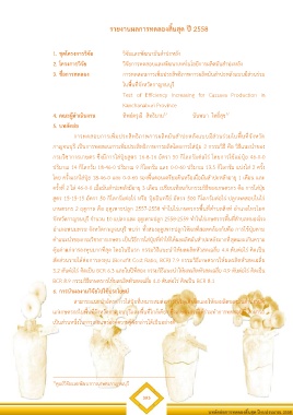 3. ชื่อการทดลอง การทดสอบการเพิ่มประสิทธิภาพการผลิตมันสำปะหลังแบบมีส่วนร่วม