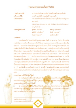 3. ชื่อการทดลอง การปรับปรุงพันธุ์ข้าวโพดเลี้ยงสัตว์ลูกผสมอายุสั้นเพื่อผลผลิตสูงและ
