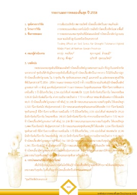 ทดสอบผลของชุดดินที่มีต่อผลผลิตข้าวโพดเลี้ยงสัตว์ลูกผสมทนทานแล้ง ที่ปลูกในเขตจังหวัด