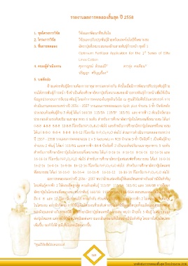 อัตราปุ๋ยไนโตรเจนที่เหมาะสม พบว่าพันธุ์ 164/1B 115/5F และ 115/5GA ตอบสนองต่อปุ๋ยไนโตรเจน