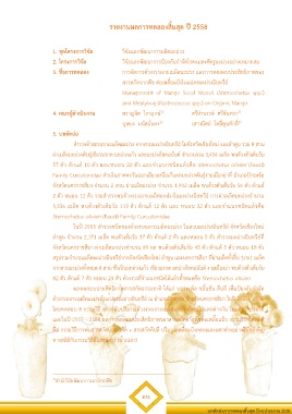2. โครงการวิจัย วิจัยและพัฒนาการป้องกันกำจัดโรคแมลงศัตรูมะม่วงอย่างเหมาะสม
