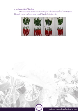 6. การน าผลงานวิจัยไปใช้ประโยชน์ั สามารถรักษาพันธุ์ดีัเพื่อใช้ในการปรับปรุงพันธุ์ต่อไปัเพื่อให้ผลผลิตสูงขึ นัเนื่องจากพันธุ์จินดา มีลักษณะดีัตรงตามความต้องการของตลาดััแต่ยังให้ผลผลิตต่้ากว่าพันธุ์การค้า 126