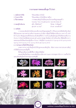 ถึงัปีั2560ัพันธุ์ลูกผสมที่ให้ทดสอบเป็นพันธุ์ที่ได้จาการปรับปรุงพันธุ์โดยศูนย์วิจัยพืชสวนเชียงราย