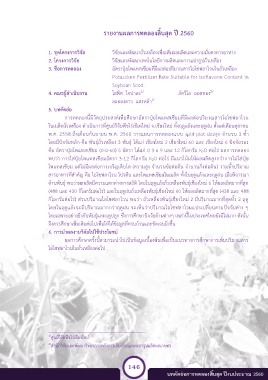 การทดลองนี มีวัตถุประสงค์เพื่อศึกษาอัตราปุ๋ยโพแทสเซียมที่มีผลต่อปริมาณสารไอโซฟลาโวน