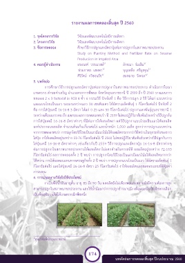 ใส่ปุ๋ย งาให้ผลผลิตอยู่ระหว่าง 53-76 กิโลกรัมต่อไร่ ปี 2560 ไม่พบปฏิกิริยาสัมพันธ์ระหว่างวิธีปลูกกับการ