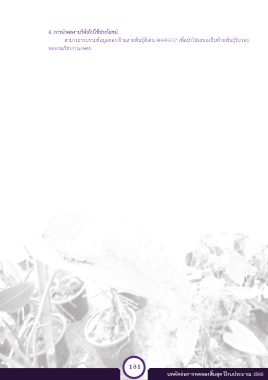 6. การน าผลงานวิจัยไปใช้ประโยชน์ สามารถรวบรวมข้อมูลของ ฝ้ายสายพันธุ์ดีเด่น AKH4-E17 เพื่อน าไปเสนอเป็นฝ้ายพันธุ์รับรอง ของกรมวิชาการเกษตร 181