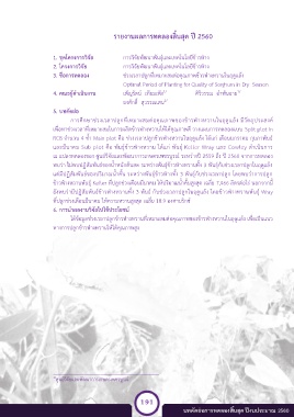 และมีนาคม Sub plot คือ พันธุ์ข้าวฟ่างหวาน ได้แก่ พันธุ์ Keller Wray และ Cowley ด าเนินการ