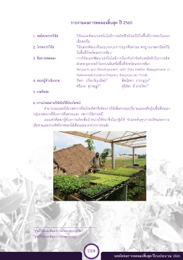 3. ชื่อการทดลอง การวิจัยและพัฒนาเทคโนโลยีการป้องกันก าจัดด้วงหมัดผักในการผลิต