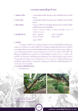 วิธีทดสอบ โดยใช้ต้นตอมะม่วงเพชรบ้านลาด เสียบกิ่งพันธุ์มะม่วงจินหวง จ านวน 3 ยอดต่อ 1 ต้น