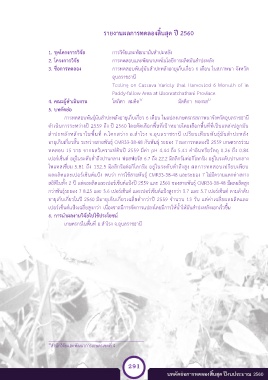 อายุเก็บเกี่ยวในปี 2560 มีอายุเก็บเกี่ยวเฉลี่ยต่ ากว่าปี 2559 จ านวน 13 วัน แต่ค่าเฉลี่ยผลผลิตและ