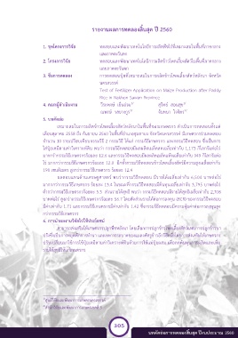 จ านวน 10 รายเปรียบเทียบกรรมวิธี 2 กรรมวิธี ได้แก่ กรรมวิธีเกษตรกร และกรรมวิธีทดสอบ ซึ่งเป็นการ