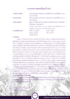 จากการเก็บข้อมูลจ านวน 8 ราย พบว่า มีผลผลิตเฉลี่ย 169 กิโลกรัมต่อไร่ สูงกกว่าการไม่ใช้การใช้ปุ๋ย