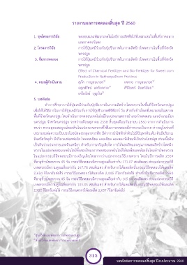 2. โครงการวิจัย การใช้ปุ๋ยเคมีร่วมกับปุ๋ยชีวภาพในการผลิตข้าวโพดหวานในพื้นที่จังหวัด