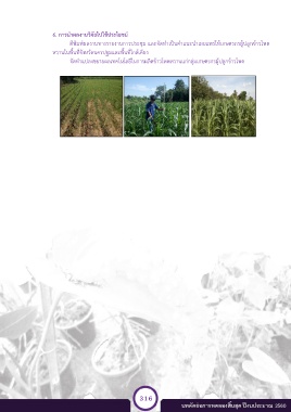 6. การน าผลงานวิจัยไปใช้ประโยชน์ ตีพิมพ์ผลงานทางรายงานการประชุม และจัดท าเป็นค าแนะน าเผยแพร่ให้เกษตรกรผู้ปลูกข้าวโพด หวานในพื้นที่จังหวัดนครปฐมและพื้นที่ใกล้เคียง จัดท าแปลงขยายผลเทคโนโลยีในการผลิตข้าวโพดหวานแก่กลุ่มเกษตรกรผู้ปลูกข้าวโพด 316
