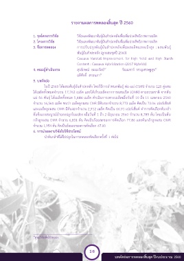 ในปีั2560ัได้ผสมพันธุ์มันส้าปะหลังัโดยวิธีการก้าหนดพันธุ์ัพ่อ-แม่ั(CMR) จ้านวนั125 คู่ผสม