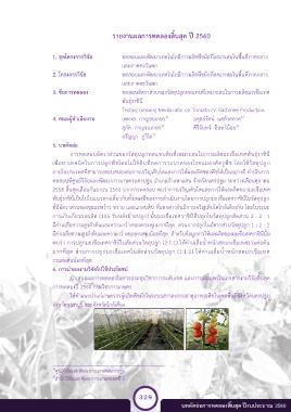 2558 สิ้นสุดเดือนกันยายน 2560 จากการทดสอบ พบว่าการเจริญเติบโตและการให้ผลผลิตของมะเขือเทศ