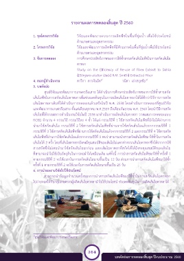 ศูนย์วิจัยและพัฒนาการเกษตรรือเสาะ ได้ด าเนินการศึกษาประสิทธิภาพของการใช้ซ้ าสารสกัด