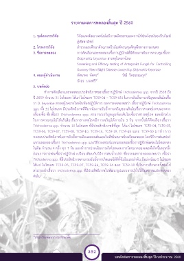 ท าการคัดเลือกและทดสอบประสิทธิภาพของเชื้อราปฏิปักษ์ Trichoderma spp. จากปี 2558 ถึง
