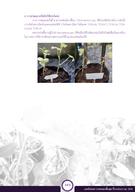 สามารถน าเชื้อราปฏิปักษ์ Trichoderma spp. ที่คัดเลือกได้ไปพัฒนาต่อเป็นชีวภัณฑ์เพื่อเป็นทางเลือก
