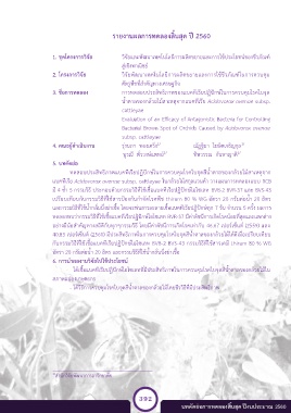 มี 4 ซ้ า 5 กรรมวิธี ประกอบด้วยกรรมวิธีที่ใช้เชื้อแบคทีเรียปฏิปักษ์ไอโซเลท BVB-2 BVR-37 และ BVS-43
