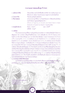 ผลการทดลองในปีั2559ัพบว่าัระยะปลูกท้าให้ผลผลิตเมล็ดพันธุ์แตกต่างกันทางสถิติัระยะปลูกั75ัx 10