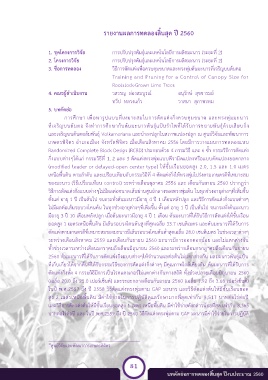 ตัดแต่งกิ่งทั งั4ักรรมวิธีมีการเป็นโรคแคงเกอร์ไม่แตกต่างกันทางสถิติัทั งช่วงปลายเดือนมิถุนายนั2560
