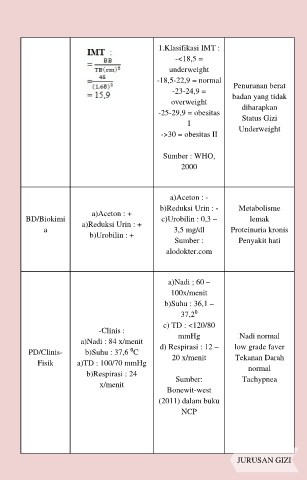PD/Clinis- b)Suhu : 37,6 ⁰C d) Respirasi : 12 – low grade faver