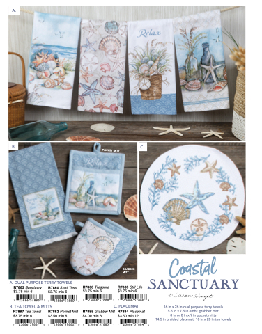 A. DUAL PURPOSE TERRY TOWELS R7883 Sanctuary R7880 Shell Toss $3.75 min 6 $3.75 min 6