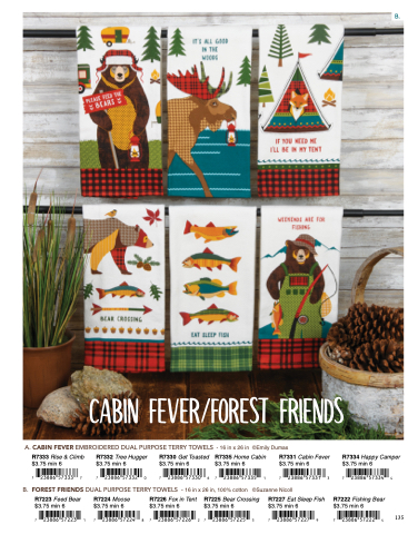 A. CABIN FEVER EMBROIDERED DUAL PURPOSE TERRY TOWELS - 16 in x 26 in ©Emily Dumas