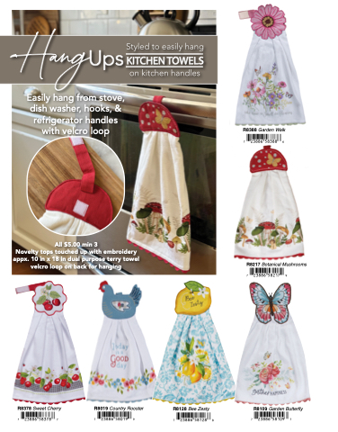 Novelty tops touched up with embroidery appx. 10 in x 18 in dual purpose terry towel velcro loop on back for hanging