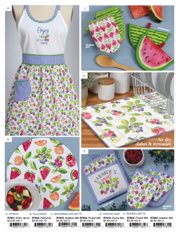 R7851 Embr. Apron R7854 Placemat R7845 Grabber Mitt R7842 Pocket Mitt R7918 Drying Mat R7852 Pocket Mitt