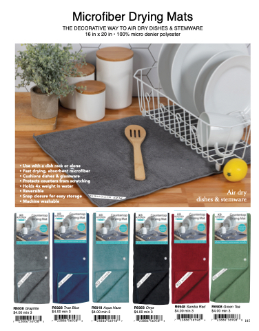 • Fast drying, absorbent microfiber • Cushions dishes & glassware
