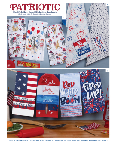 18 in x 28 in tea towels, 15 in x 20 in polyester drying mat, 13 in x 19 in placemat, 17.5 in x 28 in flour sack, 16 in x 26 in dual purpose terry towels 27