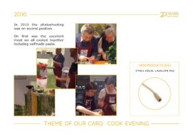 2010 In 2010 the photoshooting was on second position. On first was the excellent meat we all cooked together including selfmade pasta. NEW PRODUCTS 2010 VT403 VOCAL LAVALIER MIC THEME OF OUR CARD: COOK EVENING