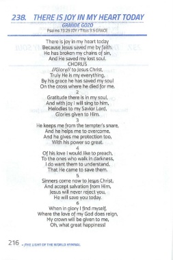 216 , ;THE LI GHT OF THE WORLD HYMNAL