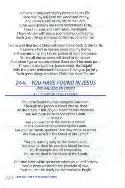 220 • ;THE LIGHT OF THE WORLD HYMNAL