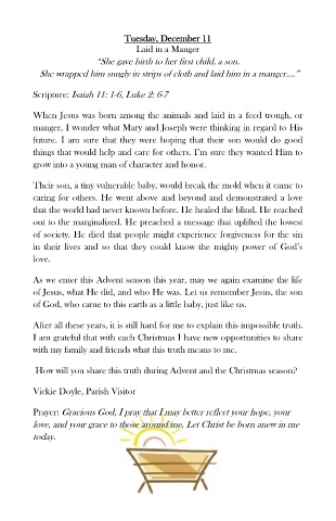 Scripture: Isaiah 11: 1-6, Luke 2: 6-7