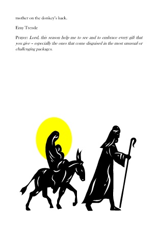 mother on the donkey’s back. Emy Trende Prayer: Lord, this season help me to see and to embrace every gift that you give – especially the ones that come disguised in the most unusual or challenging packages.