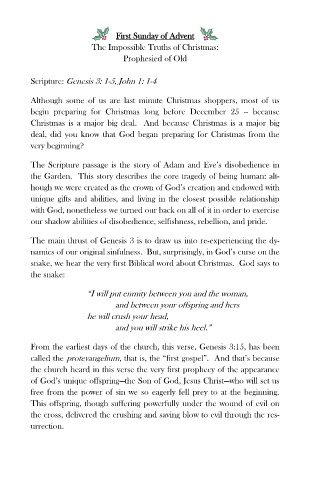 snake, we hear the very first Biblical word about Christmas. God says to