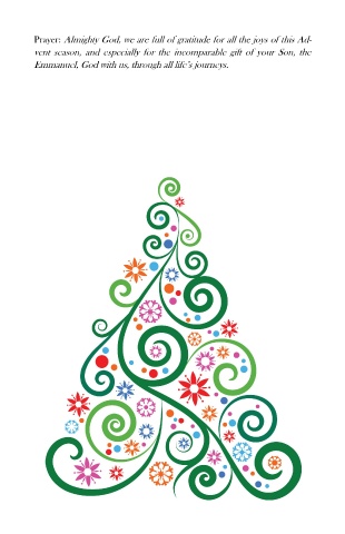 Prayer: Almighty God, we are full of gratitude for all the joys of this Ad- vent season, and especially for the incomparable gift of your Son, the Emmanuel, God with us, through all life’s journeys.