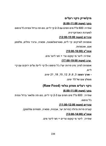 שתייה: ליטר מי קוקוס טרי + חצי ליטר מים.