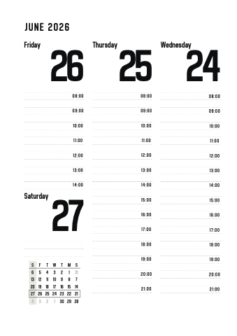 Thursday Wednesday 26 25 24