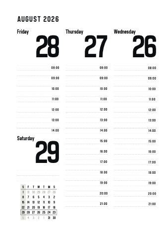 Thursday Wednesday 28 27 26