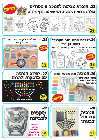 23. חוברת צביעה לחנוכה 8 עמודימ כוללת 4 דפי צביעה, 2 דפי פעילות ודפ חידות