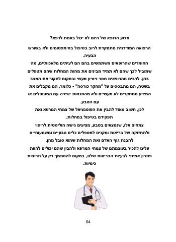 הרפואה המודרנית מתמקדת לרוב בטיפול בסימפטומים ולא בשורש