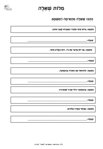 כִּ תְׁ בוּ ש ְׁ אֵ לָ ה מַ תְׁ אִ ימָ ה לַ מִּ ש ְׁ פ ָּ ט