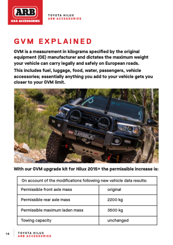 With our GVM upgrade kit for Hilux 2015+ the permissible increase is: